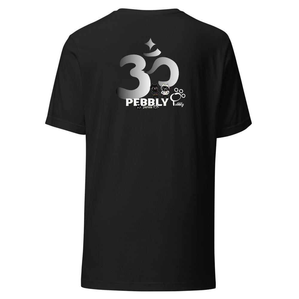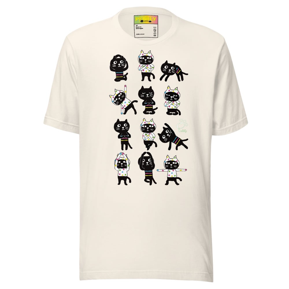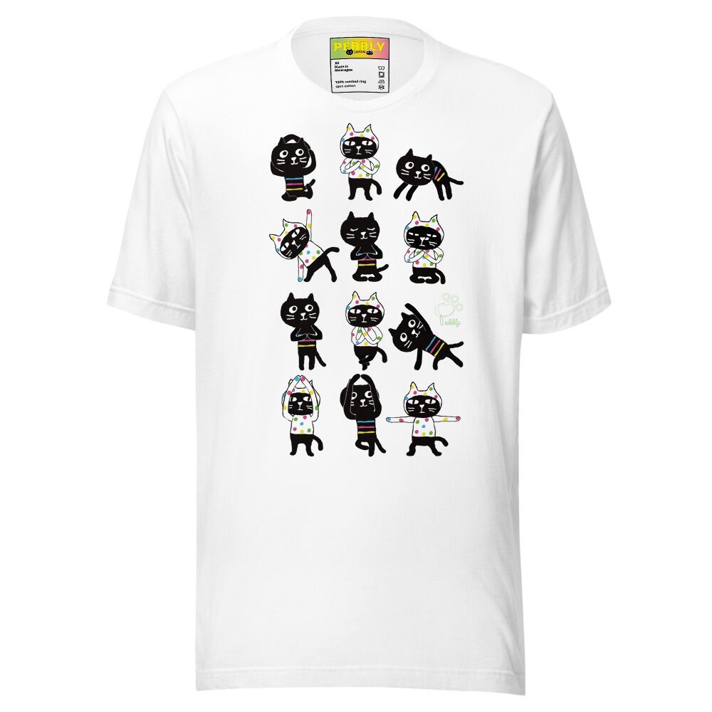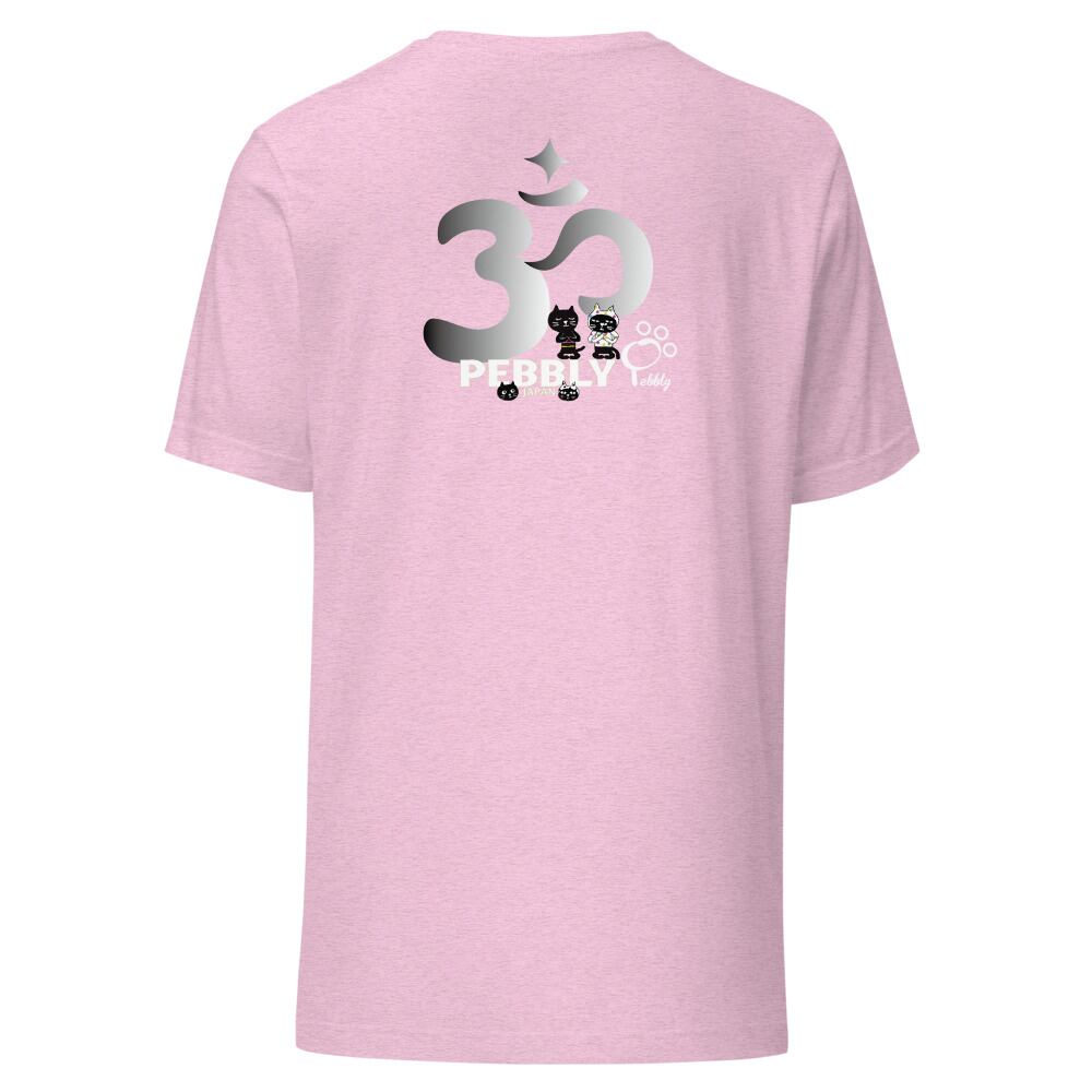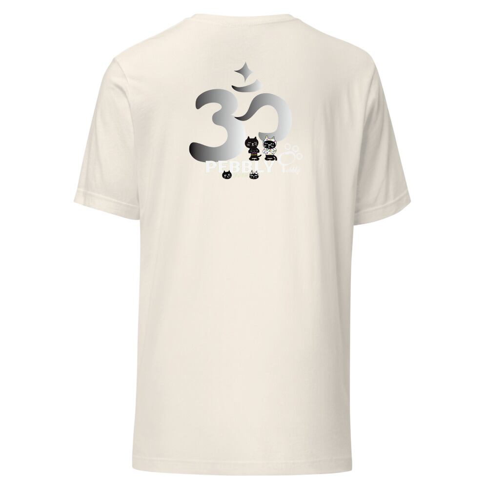 PEBBLYの猫キャラクター”Cats Friends”のミーとヨーがなんとも可愛くヨガポーズを取っています。背面にはサンスクリット語の宇宙の真理,平和を意味する<Aum>(アウム)とナマステポーズのミーとヨーのデザイン。