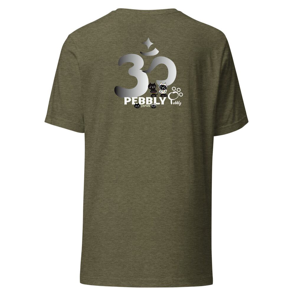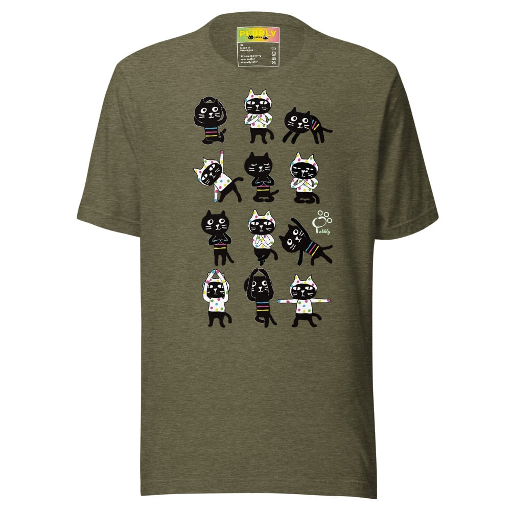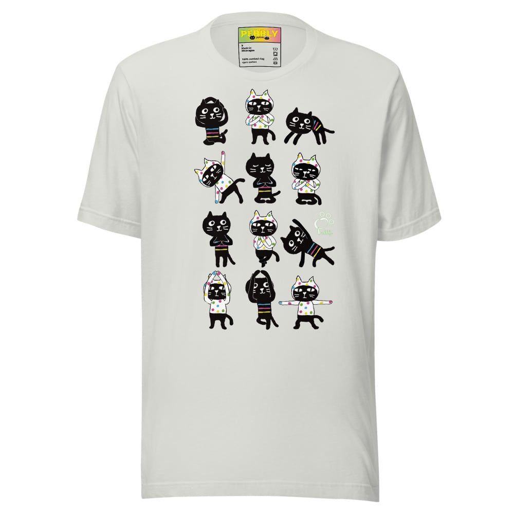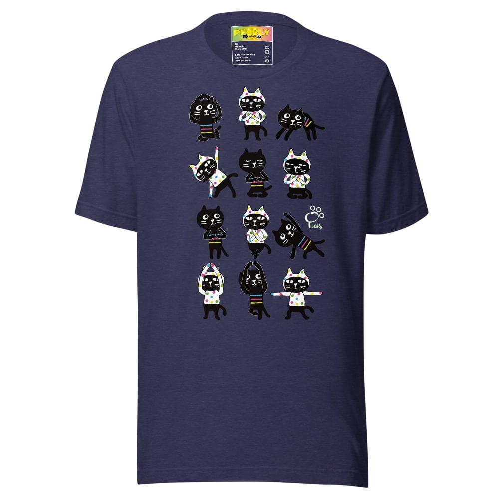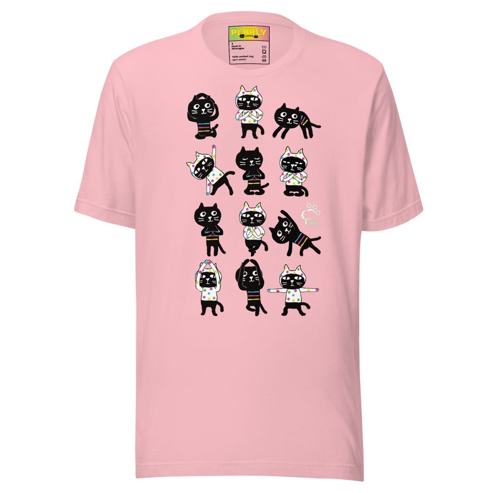 PEBBLYの猫キャラクター”Cats Friends”のミーとヨーがなんとも可愛くヨガポーズを取っています。背面にはサンスクリット語の宇宙の真理,平和を意味する<Aum>(アウム)とナマステポーズのミーとヨーのデザイン。